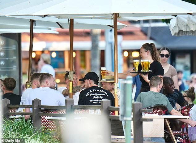 Las estrellas disfrutan de unas cervezas frías en el popular Rococo Bistro Bar junto a la playa en las fotos exclusivas del grupo del Daily Mail bajo el sol, la arena y el surf en Noosa.