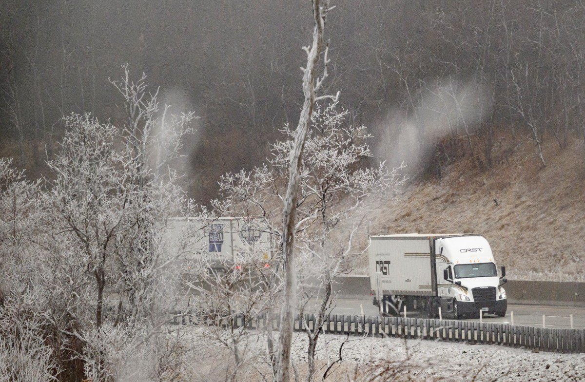 El meteorólogo Cody Barnhart el viernes X: «Nuestra tormenta de hielo continúa en Pensilvania y lo único que queda expuesto es una capa de hielo. Grandes accidentes en todo el estado. Greencastle se acerca rápidamente @NWSStateCollege @mikestanislaw @MatthewCappucci @tornadopaigeyy @TOMRUSSELLCBS21»