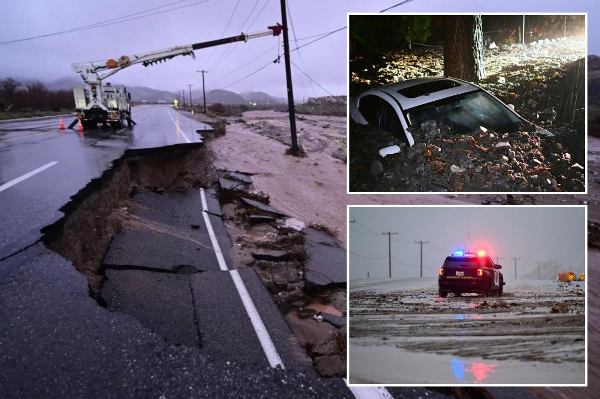 Un video publicado por los bomberos del condado mostró escombros y barro cayendo por una carretera en Wrightwood. Otro vídeo mostraba agua a gran velocidad corriendo por los porches delanteros de varias casas.