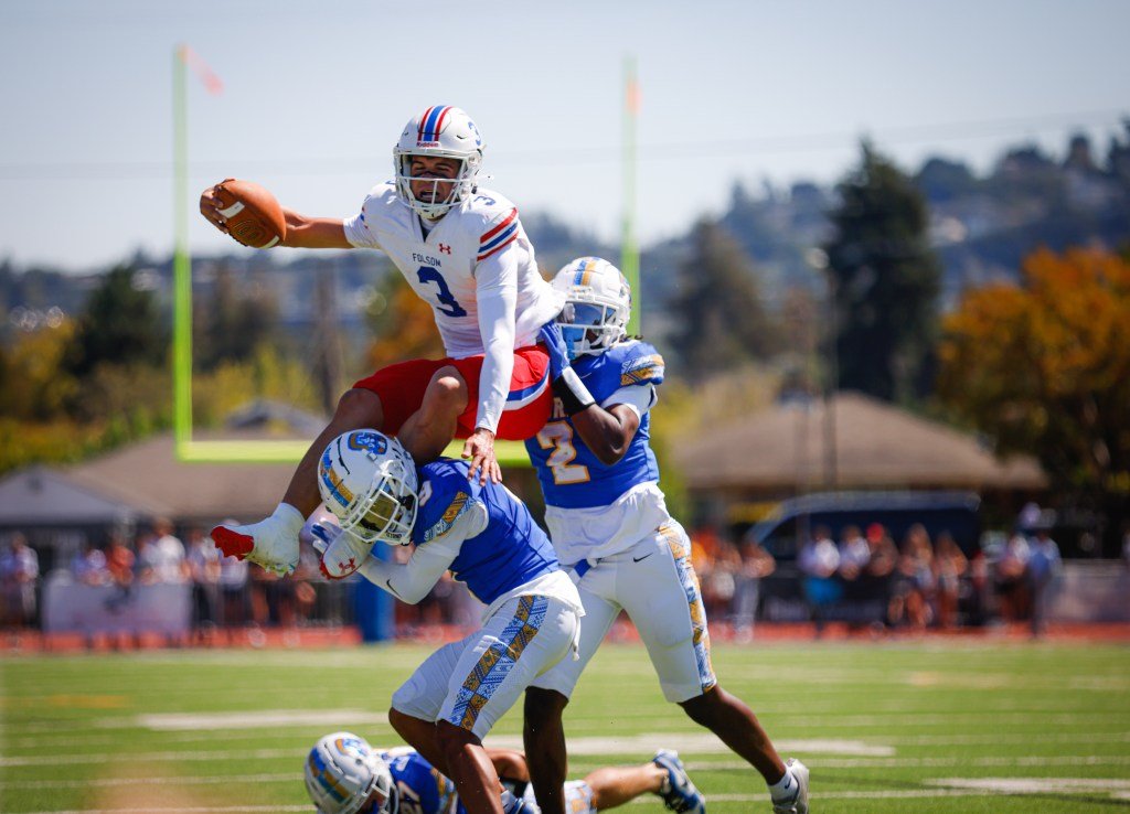 Luego, al final del cuarto, Ez Coleman sella el juego para el folsum. El lineback junior dejó de cruzar el pase de Bandel en medio de menos de dos minutos, luego corrió 45 yardas para el TD de sellado del juego, que dejó caer el Fallsom 56-42 arriba.