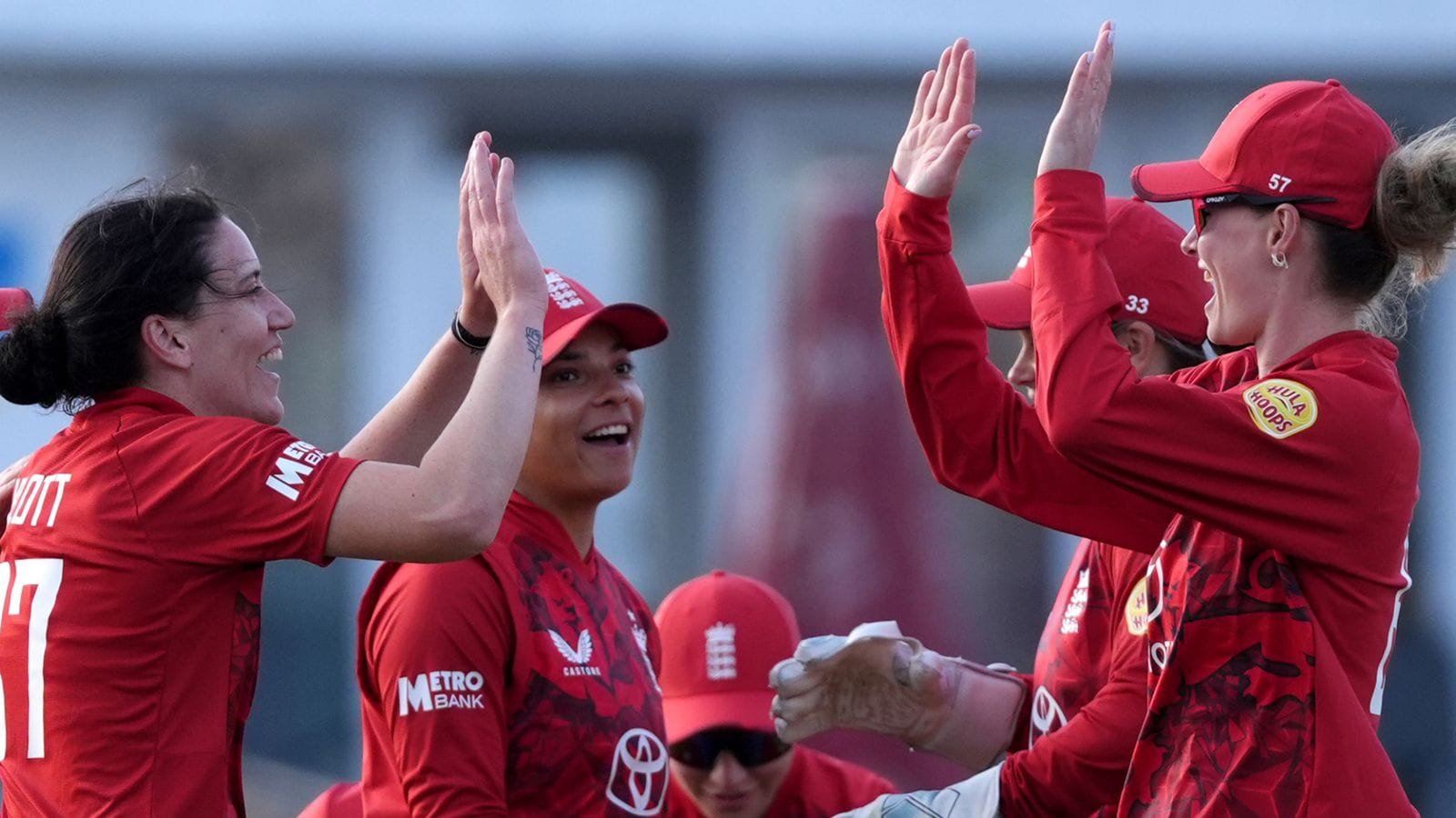 Con una fiesta sin cambios en el campo, fue un Earlot (3-14) que fue un artista destacado con el balón en Inglaterra, especialmente el Capitán Hayily Mathews ()), que tomó tres wickets en la entrega de siete en lugar de siete entrega, que anotó un T-20 AI inaugural.