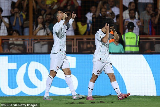 Luego, Joao Canllo llegó 3-1 a Portugal, luego Ronaldo luego agregó otro gol antes del segundo juego de Joao Felix.