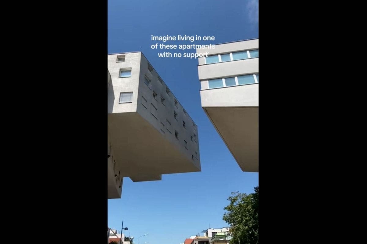 Video, Tiktok ha publicado el usuario @AdgonezSe presenta una fila de apartamentos modernos en la capital austriaca que parecen recorrer el aire sin ningún apoyo visible debajo de ellos. El clip ha recopilado más de 615,000 visitas desde que compartió el clip el 5 de julio.