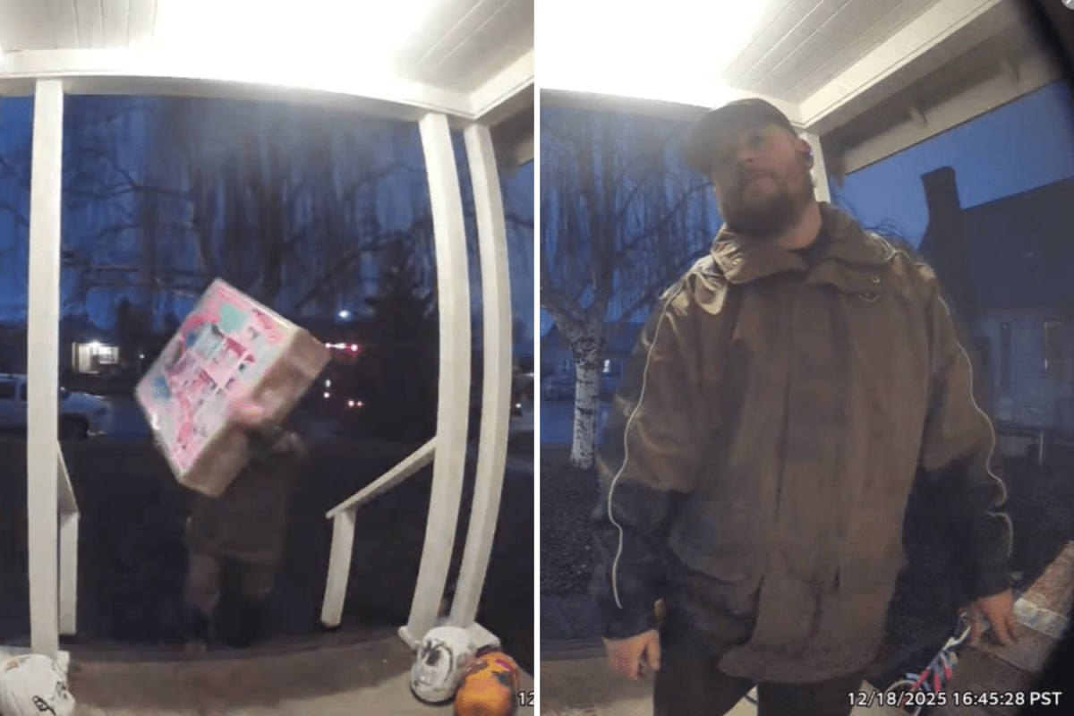 Una cámara de timbre en Wenatchee, Washington, reveló el momento en que llegó un repartidor con un paquete grande en su caja original, dejando claro lo que había dentro.