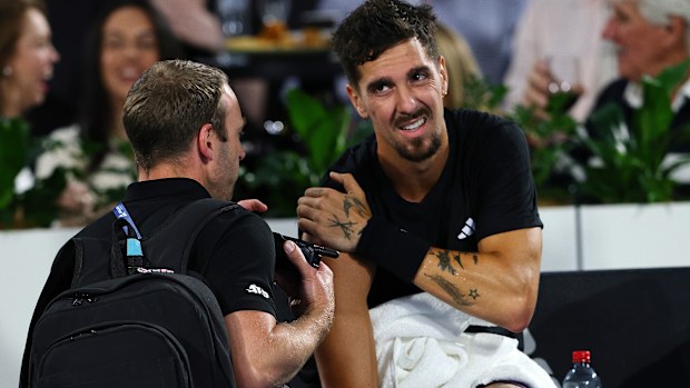 En el choque del lunes por la noche, el australiano parecía dispuesto a retirarse por una lesión de Sebastián Gorda, que empujó al jugador local al desempate en el tercer set.
