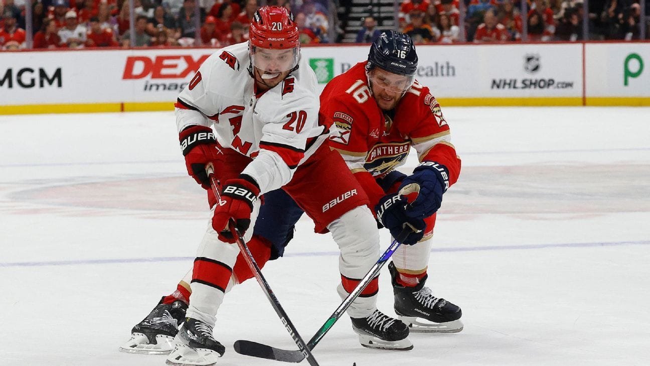 Los Panthers ganan el 3-0 en la serie -5000, pero de acuerdo con la apuesta de ESPN para tomar la serie de tormentas; Esos números se ajustan de Florida -700 y Carolina +425 antes del Juego 3. Florida también lideró la Copa en -110, y los candidatos Sergei Bobroowsky Kon Smith Trophy a +200.