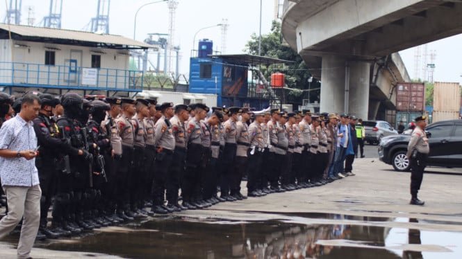 Yakarta, Vira – Un total de 322 empleados conjuntos de la Policía de Port de Tangung Priok, Ditsamapta Polda Metro Jaya, Satbrimobda, Disab, Disub, XOP, PFSO Preock, domingo 21 de septiembre de 2025.