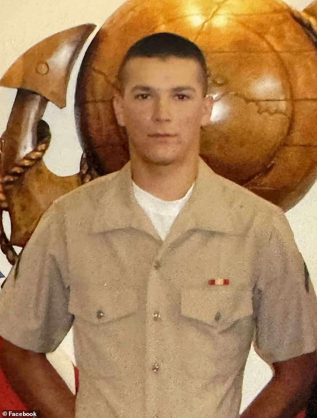 Unas 100 personas acudieron el domingo a la gasolinera donde Valdez (en la foto con su uniforme de la Marina) fue visto con vida por última vez para buscarlo.