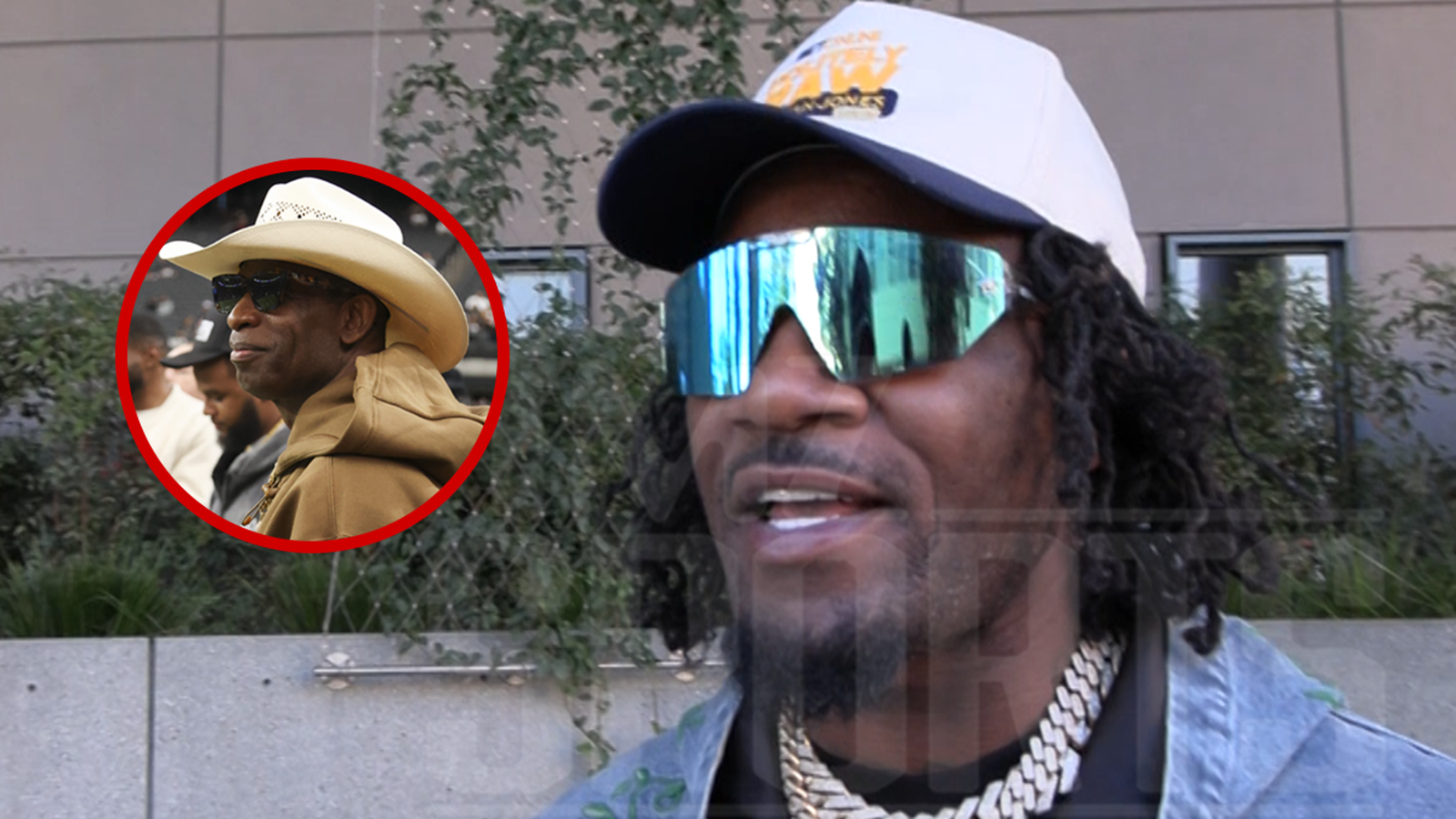 deportes Se reunió con la ex estrella de la NFL afuera de Paramount el miércoles… y le preguntó si el entrenador Prime podía lanzar su sombrero al carrusel de entrenadores en curso.