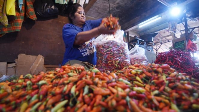 Además, el precio de los chiles rojos rizados bajó en 37.838 IDR o 5.422 IDR por kg, el precio de los chiles rojos grandes bajó en 36.592 IDR o 4.235 IDR por kg, y el precio de los chiles rojos bajó en 69.511 IDR con respecto al día anterior desde 69.511 IDR por kg.