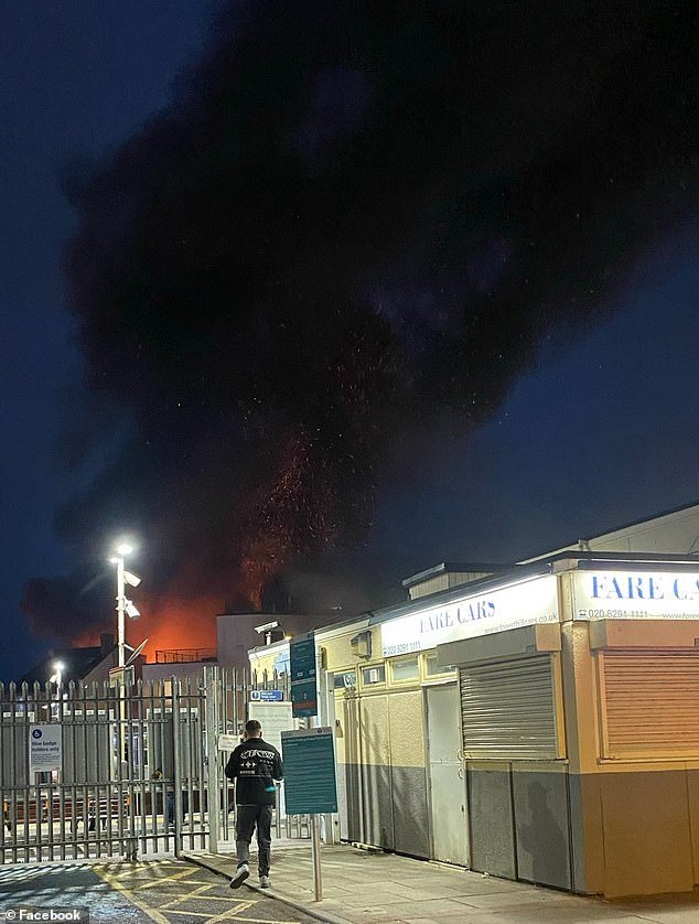 Se entiende que el infierno (en la foto) que cerró temporalmente la estación de Forest Hill causó perturbaciones masivas a los pasajeros del tren.