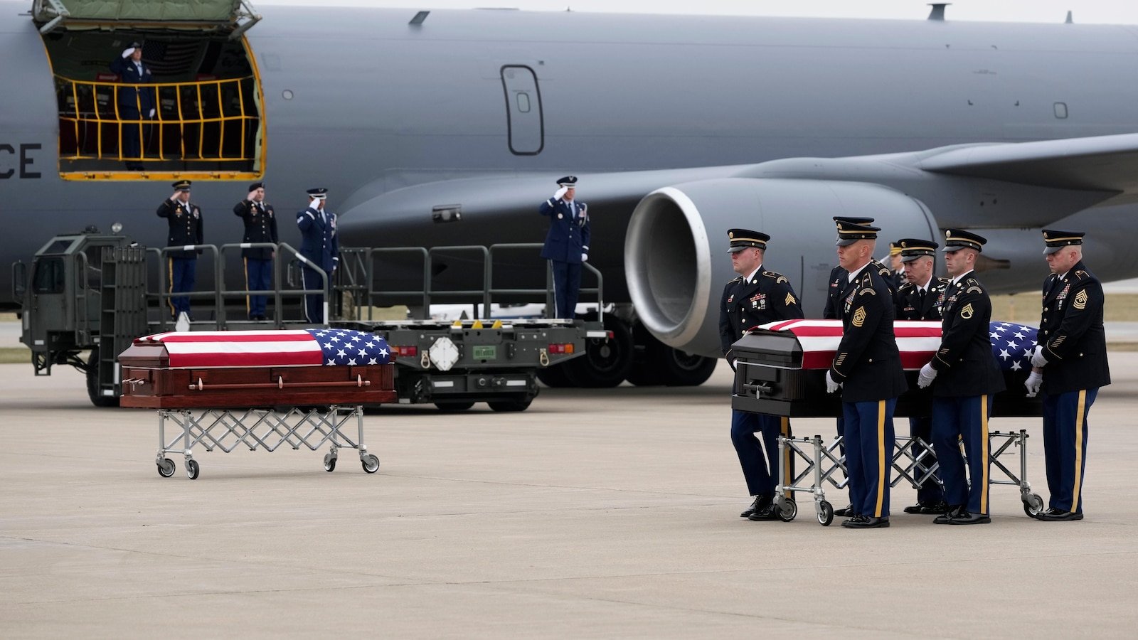 El miércoles, el medio hermano de Howard y otros dos miembros de la Guardia Nacional de Iowa llevaron ataúdes de madera cubiertos con banderas estadounidenses desde el cuerpo de un avión de la Guardia Nacional Aérea de Iowa que despegó de Sioux City para recoger los restos de los soldados de Delaware.