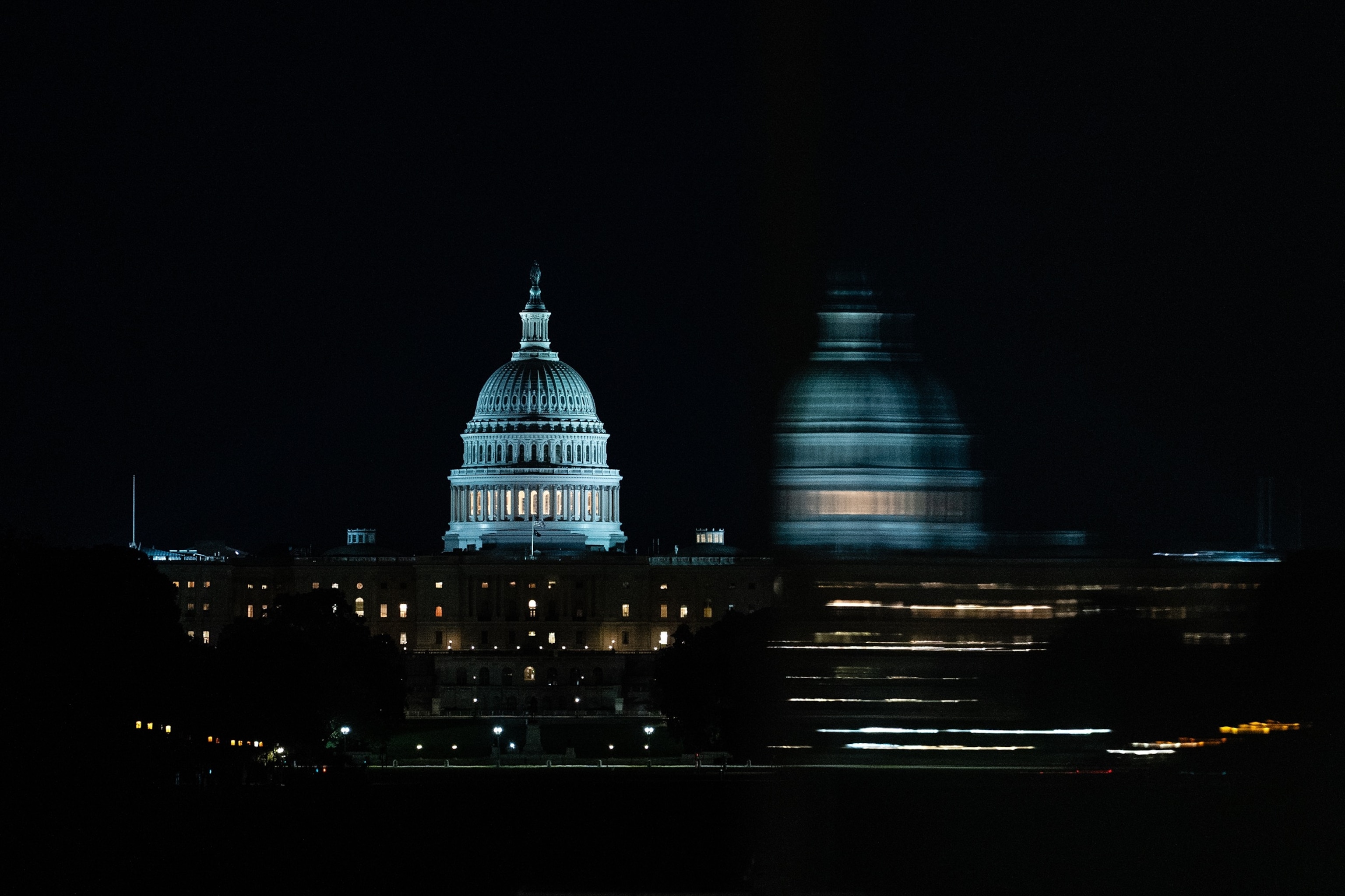 El edificio de la capital de EE. UU. Aparece del Monumento a Washington, que está abierto al público el 1 de octubre de 2025 en Washington, Estados Unidos.