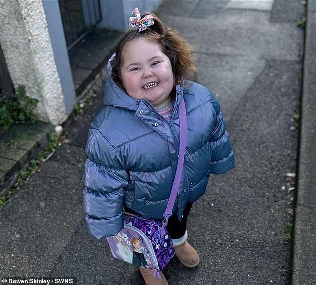 Bunny Skinley, de tres años, su padre Rowen y dos hermanos caminaban a casa cuando un perro lanzó un malvado ataque el 17 de junio.