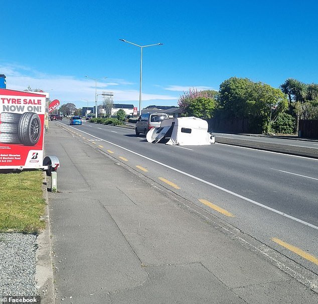 Los automovilistas quedaron sorprendidos por el extraño lugar de una caravana arrugada el jueves por la mañana en una concurrida calle de Christchurch.
