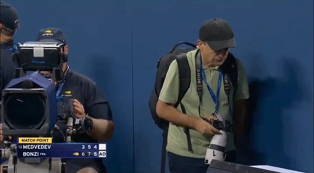 En el US Open el domingo por la noche, la estrella de tenis rusa Danille Medvve dijo que era una verdadera víctima del fotógrafo Daily Mail, quien quemó la legendaria diatriba de la diatriba épica de la diatriba épica, y ahora se está contactando con abogados después de retirar sus credenciales.