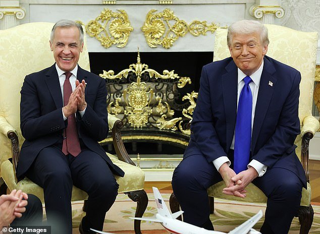 El primer ministro de Canadá, Mark Carney, desplegó una nueva estrategia cuando se reunió con el presidente Donald Trump el martes en los copos de la Casa Blanca sobre los copos.