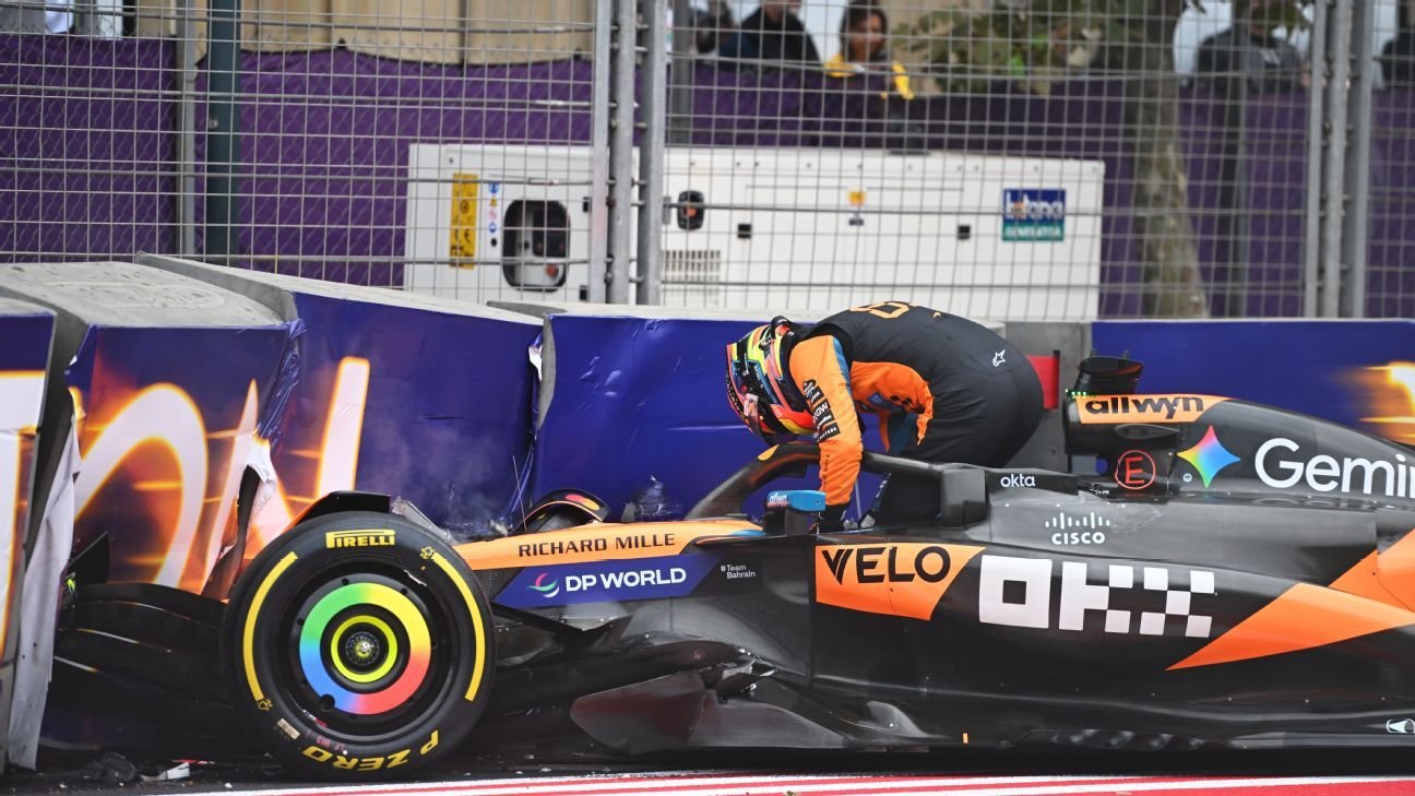 El compañero de McLaren, Noris, un margen de 31 puntos, eliminó un escape nervioso y desacelerado de la línea y cayó detrás del suelo.