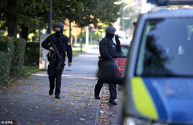 1 de octubre de 2025, se encontraron fuerzas policiales especiales en la escena del incidente después de un equipo explosivo en Burning House en Munich, Alemania