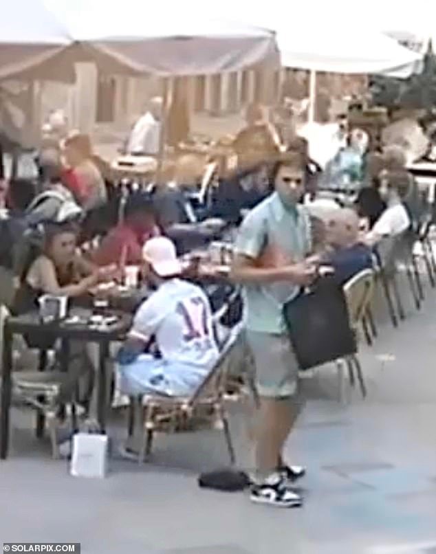 Este es un momento increíble en el que un ladrón en la plaza llena de Barcelona usa su pie para robar una bolsa de debajo de la nariz de su dueño.