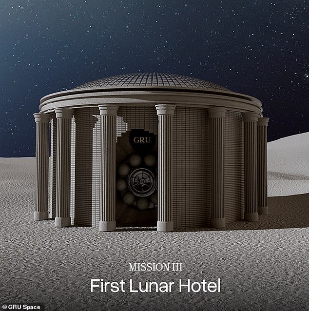 El primer hotel lunar de GRU Space será una estructura inflable construida en la Tierra y transportada a la luna por SpaceX de Elon Musk.