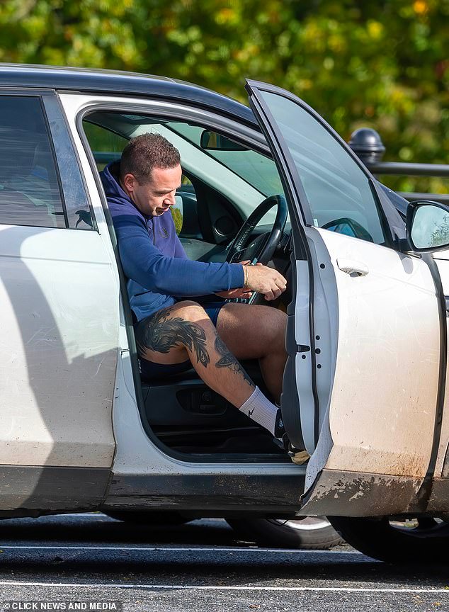 El entrenador personal Hayler fue visto hoy vestido de manera informal mientras caminaba desde su vehículo en el estacionamiento hasta la estación de tren.