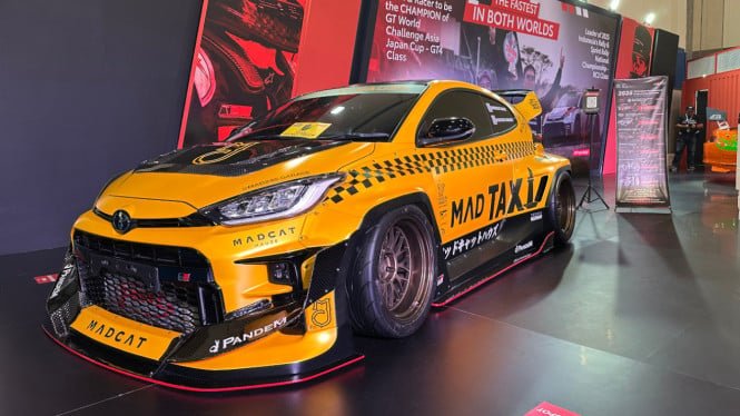 Además, los visitantes también han entregado el «Mad Taxi» creado por Mad Garage, miembro de la Asociación de Propietarios de Toyota. Los cambios excesivos con un kit de carrocería ancho y aerodinámico muestran la otra cara del GR Yaris, que se separa del coche de rally normal.