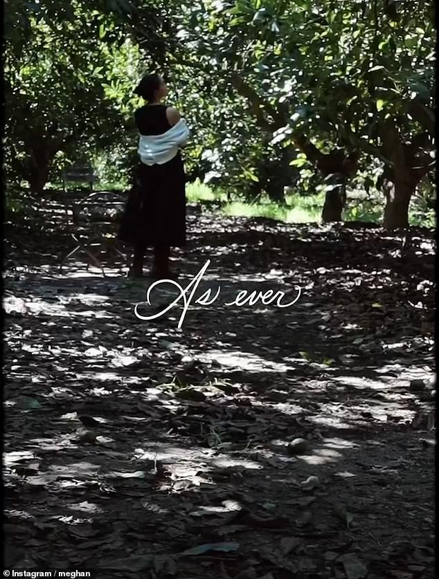 La duquesa de Sussex, de 44 años, recurrió a Instagram el jueves por la noche para compartir un vídeo de ella paseando casualmente entre los árboles con un vestido negro y un cárdigan blanco.