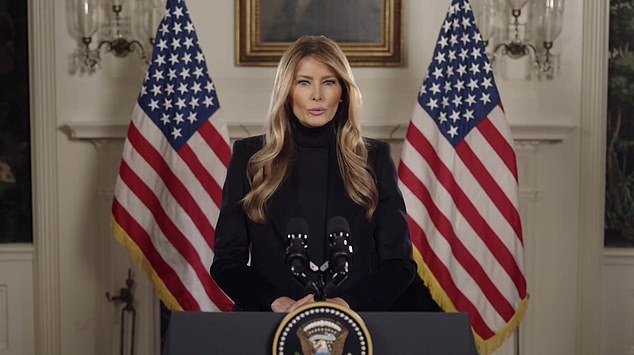 Cuando la programación ingresó a la Casa Blanca, la primera dama comenzó a hablar desde un podio en la Sala de Recepción Diplomática.