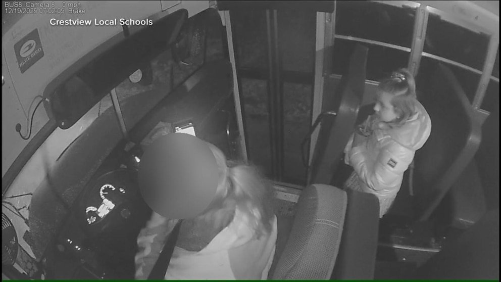 Un video de vigilancia desde el interior de un autobús escolar muestra el momento en que estudiantes heroicos ayudaron a salvar a un conductor de autobús que tenía problemas médicos en Ashland, Ohio.