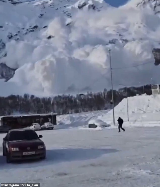 La gente vio con horror cómo una avalancha se dirigía directamente hacia ellos desde un aparcamiento en el centro turístico de Elbrus en Kabardino-Balkaria.