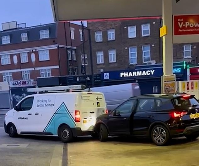 El moldavo fue filmado conduciendo por Jamie Walker, de 24 años, que estaba en Londres por trabajo y dijo que vio el asiento negro entrar en la gasolinera alrededor de las 7 de la mañana.