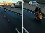 Este es el momento de infarto en un ciclista imprudente acelera por el carril exterior de la A14 cerca de Cambridge en una pose de ‘Superman’ encima de un vehículo.