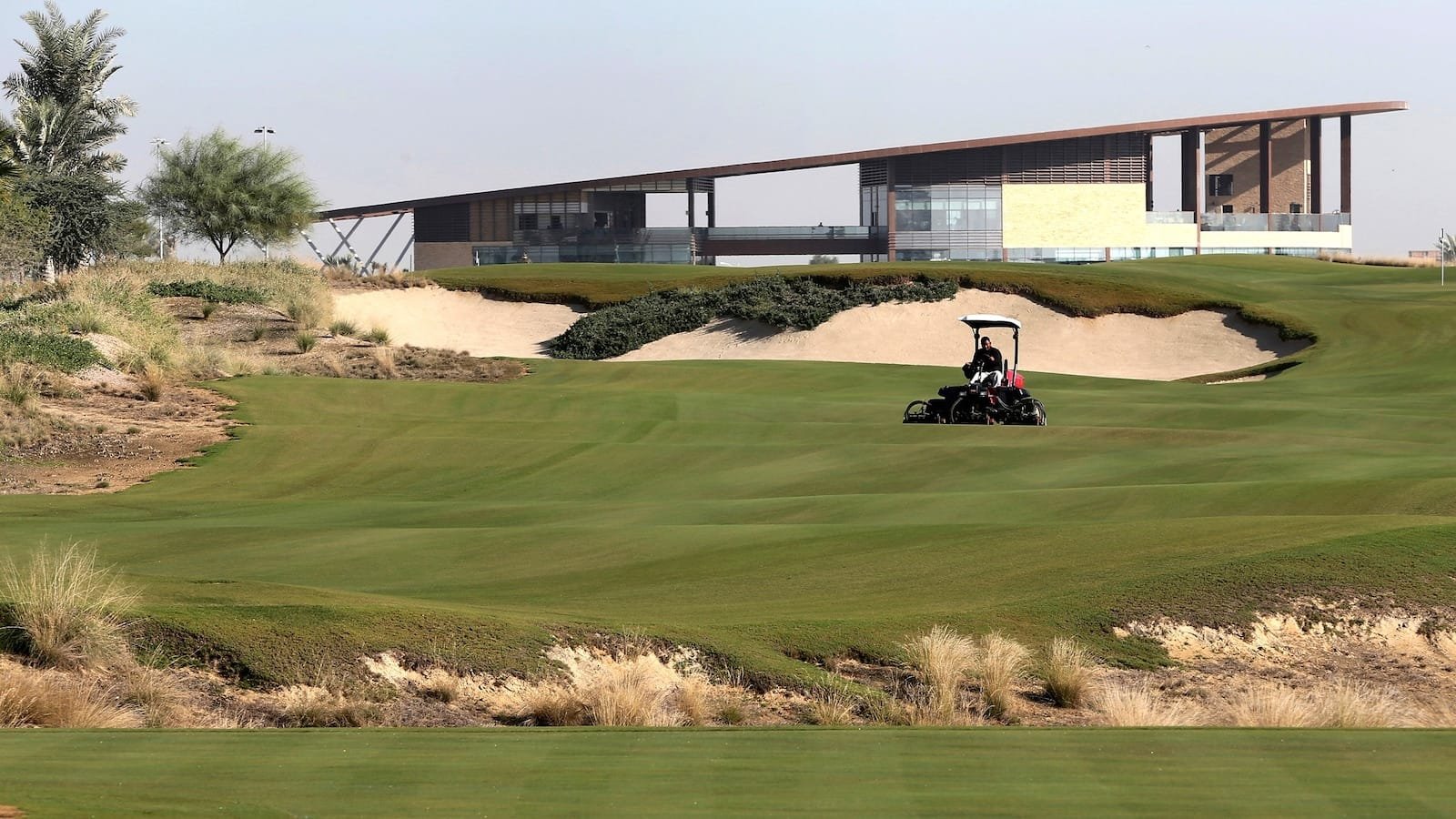 El 20 de diciembre de 2016, un empleado en la foto del archivo, un empleado golpea la hierba frente a la casa club en el Trump International Golf Club en Dubai, Emiratos Árabes Unidos.