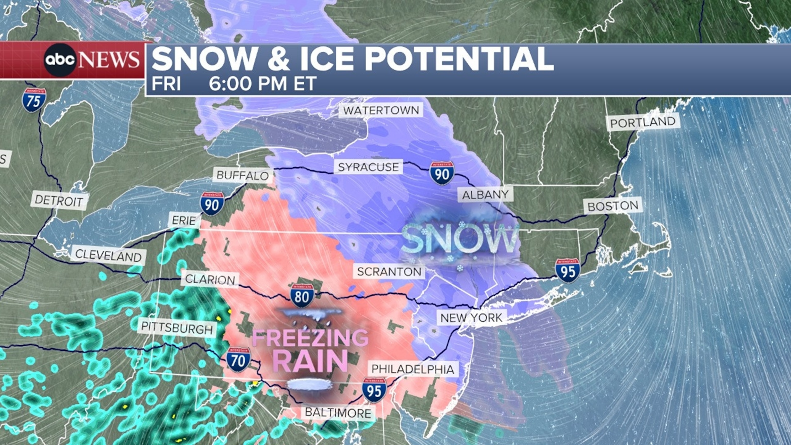 El viernes por la mañana, una lluvia helada se desplazará hacia el este, hacia Pensilvania, y cubrirá el estado durante todo el día, lo que hará que las carreteras sean extremadamente peligrosas. Hay una advertencia de tormenta de nieve vigente para aproximadamente 1 millón de personas en partes del oeste de Pensilvania.
