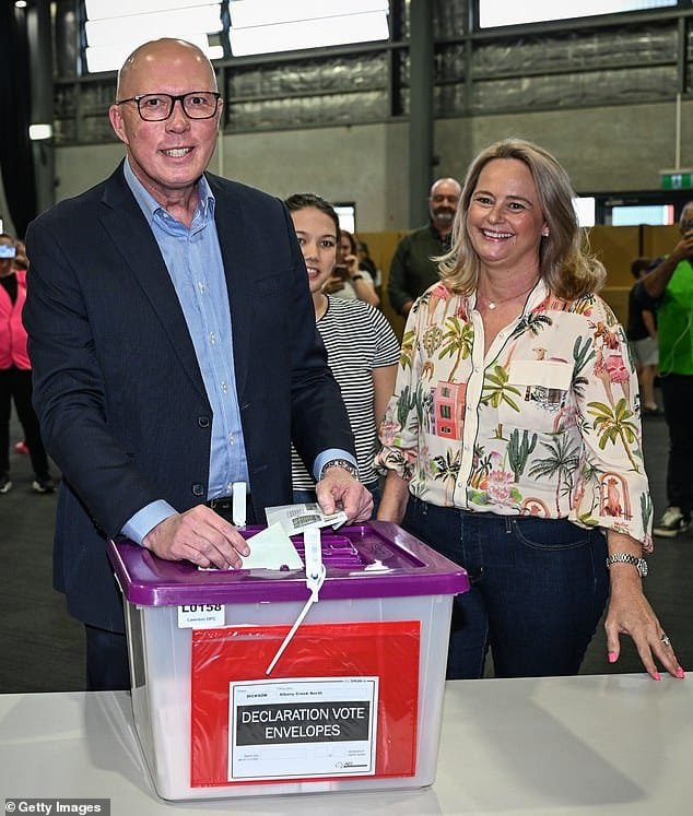 El interior del interior del escenario está sobre la posibilidad de ganar la sede de Peter Dutón (el líder de la oposición parece votar con su esposa Kirilly el sábado)