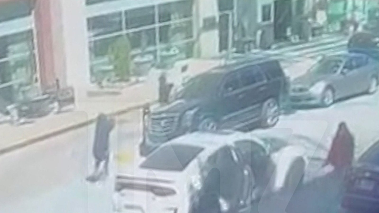 De repente, un sedán blanco de 4 puertas se detiene a una pequeña calle … y 3 hombres saltan con 2, brotando el SUV y abriendo el fuego.