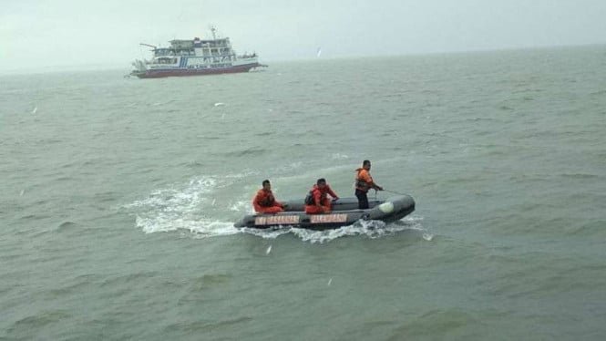 El escenario del personal de Basarnas para realizar una operación de búsqueda para las víctimas del barco que se hunde.