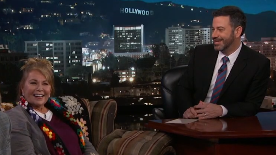 En marzo de 2018, Rojanne Bar y Jimmy Kimmel fueron amigables charlando en el próximo programa de entrevistas. (Crédito de la imagen: ABC)