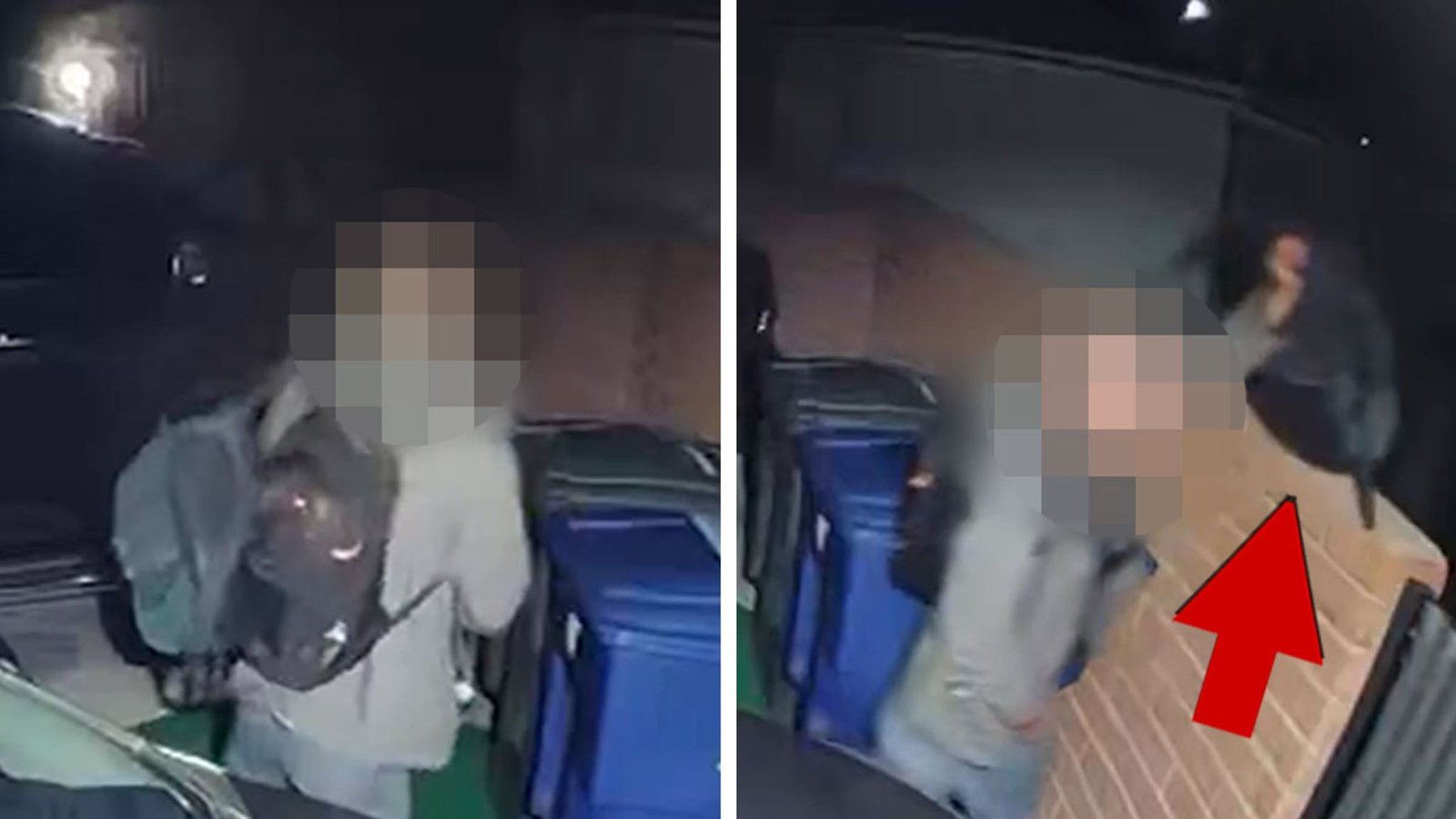 El hombre en el nuevo vídeo intenta entrar por la puerta cerrada, sin éxito. Fue grabado en la cámara del anillo del residente a la 1:52 a.m.