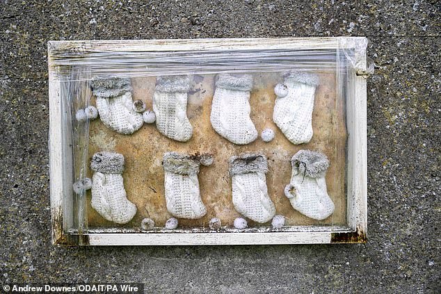 Un monumento en el sitio de la antigua Institución para Madres y Bebés en Tuam, Co Galway, abandonado al inicio de los trabajos previos a la excavación en el sitio.
