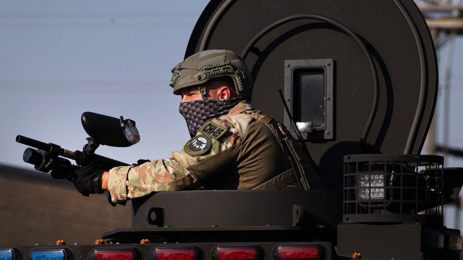 Broadview de aplicación de la ley, IL, 3 de octubre, fue detenido cerca del Centro de Inmigración y Control de Aduanas en octubre de 2025.