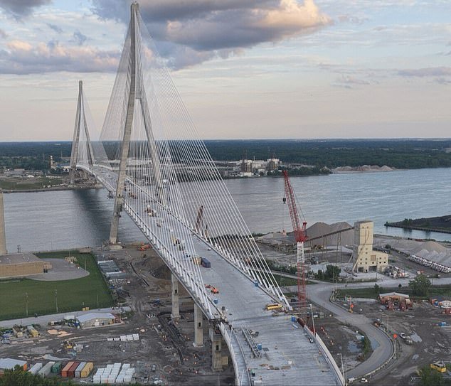 El cruce será el puerto de entrada terrestre más grande entre Canadá y Estados Unidos, con una altura de casi 150 pies sobre el río y de 720 pies en sus torres más altas.