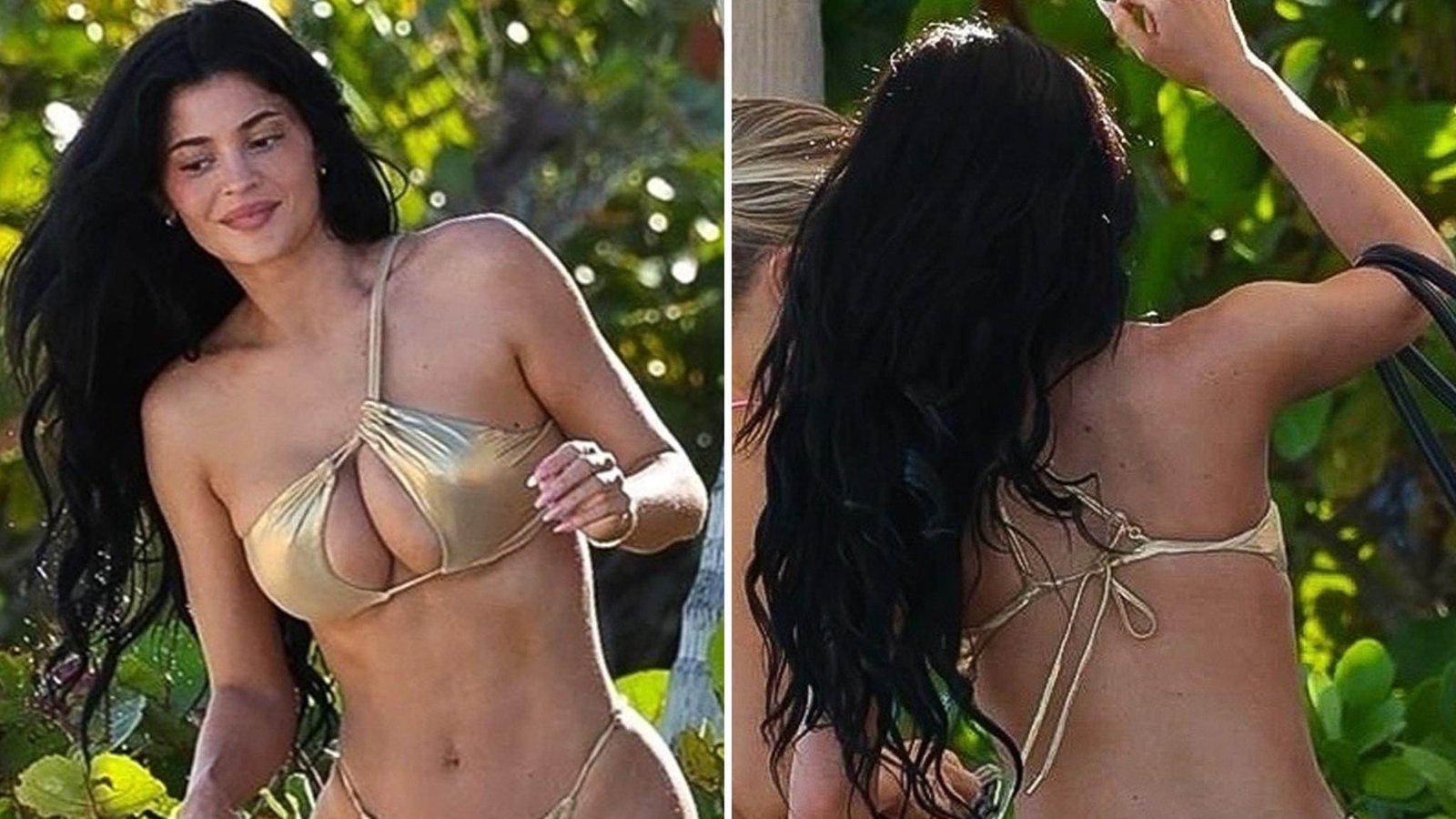 El bikini de oro no es solo complementario, sino que también está levantando ese brillo. Kylie la vio bronceado para atar cada río dorado y acampó del lado de la playa con el mejor de los mejores.