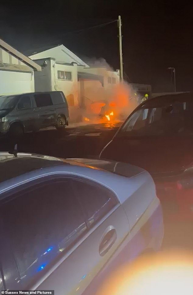 Un representante de la policía de la policía de Sussex dijo: «Dos máscaras y vestidos oscuros mostraron imágenes antes de que la mezquita fuera acelerado en la entrada de la mezquita e iluminando el fuego».