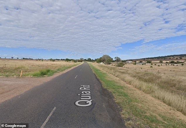 La policía fue llamada a un control de bienestar en una casa en Quia Road en Gunnedah, a unos 450 kilómetros al noroeste de Sydney, alrededor de las 13.40 horas del viernes (la carretera aparece en la foto).