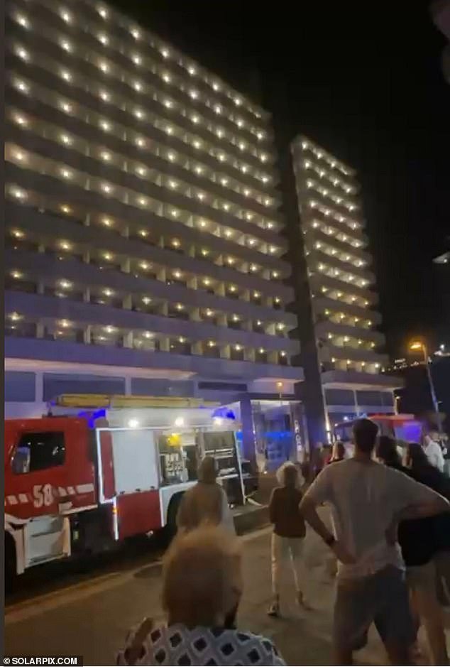 La orden de evacuación afectó a 490 huéspedes, entre ellos varios Britas, mientras se encontraban en la oscuridad fuera del hotel y los bomberos entraban al patio.