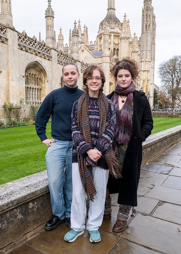 Las furiosas estudiantes fundadoras de la Sociedad de Mujeres de la Universidad de Cambridge (CUSW), Thea Sewell, Serena Worley y Meave Halligan (de izquierda a derecha), están protestando contra el llamado del Newnham College para permitir que los hombres biológicos se «autoidentifiquen» como mujeres.